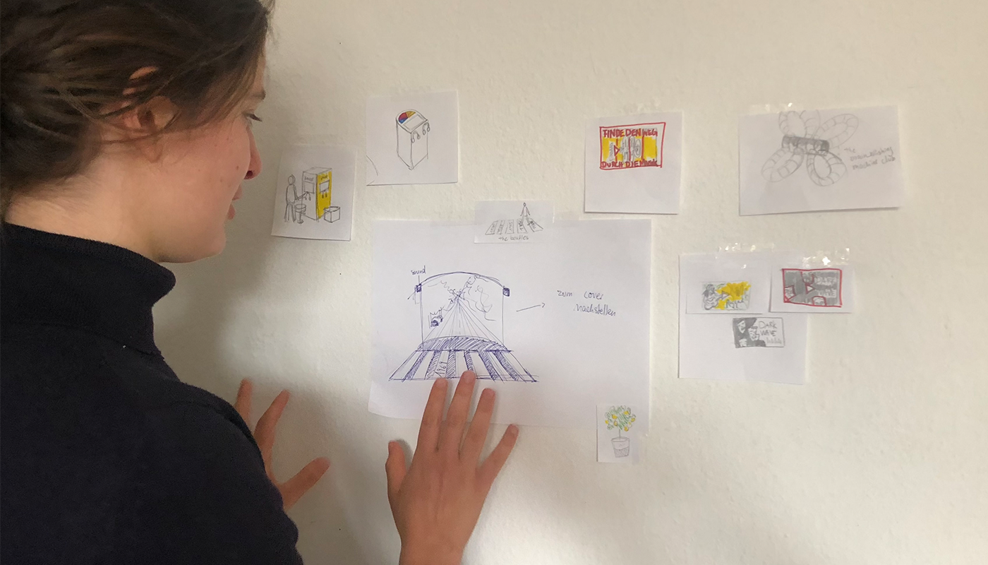 Nach dem Brainstorming bezüglich der Ideen allgemein zum Ausstellungsthema „Radio Gaga“, skizzierte ich einige von diesen Ideen, um eine gute Übersicht zu bekommen. Ich entschied mich für die Idee, einen interaktiven Zebrastreifen, angelehnt an das Abbey Road Cover der Beatles, zu entwickeln.