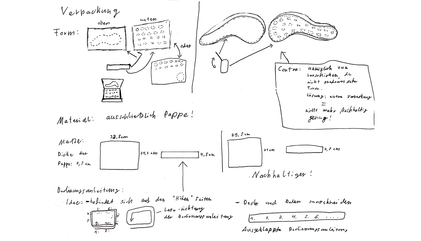 Um den Prototypen zu gestalten, habe ich mir eine alte Verpackungsschachtel genommen, diese komplett aufgeklappt und dann Text und Illustrationen aufgezeichnet. Danach habe ich diese Verpackung zur anderen Seite wieder zusammengefügt. Im Grunde genommen habe ich das, was auf den Mockups zu sehen war, in echt umgesetzt.