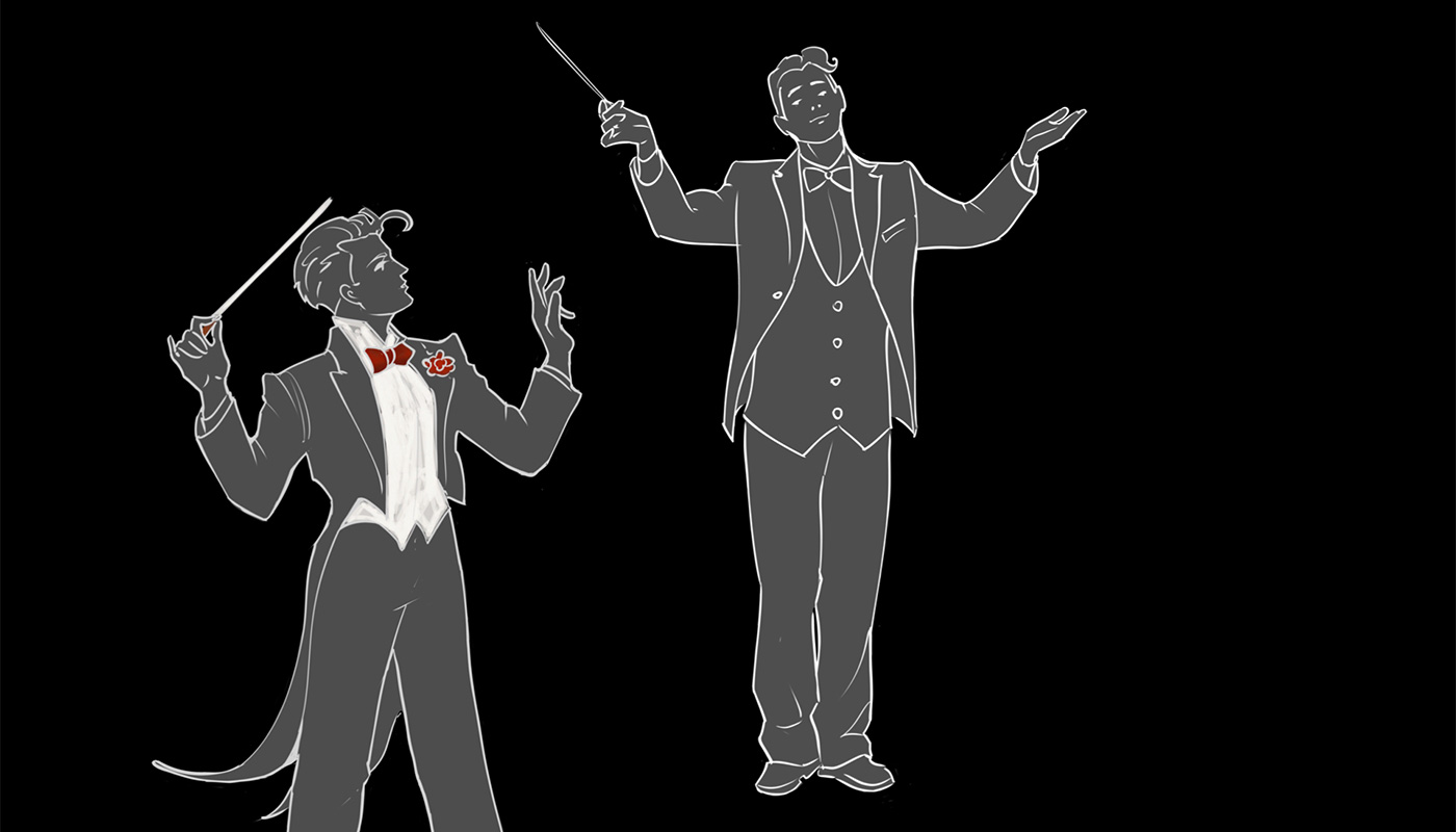 Der Taktstock wird im Hand genommen - die Musiker erscheinen