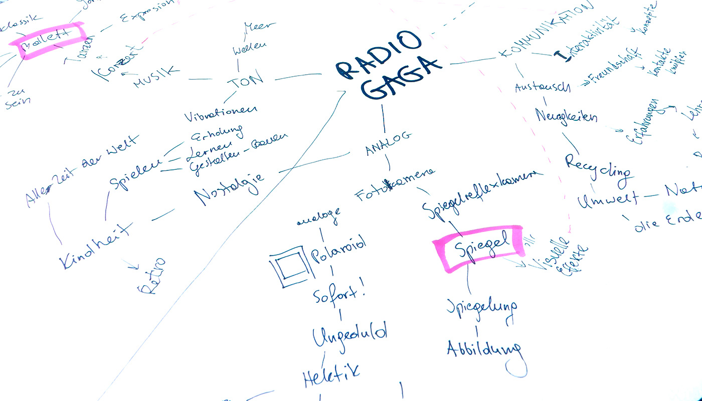 Der erste Schritt bestand darin, eine Mindmap zu erstellen und daraus 5 Exponatideen zu entwerfen.