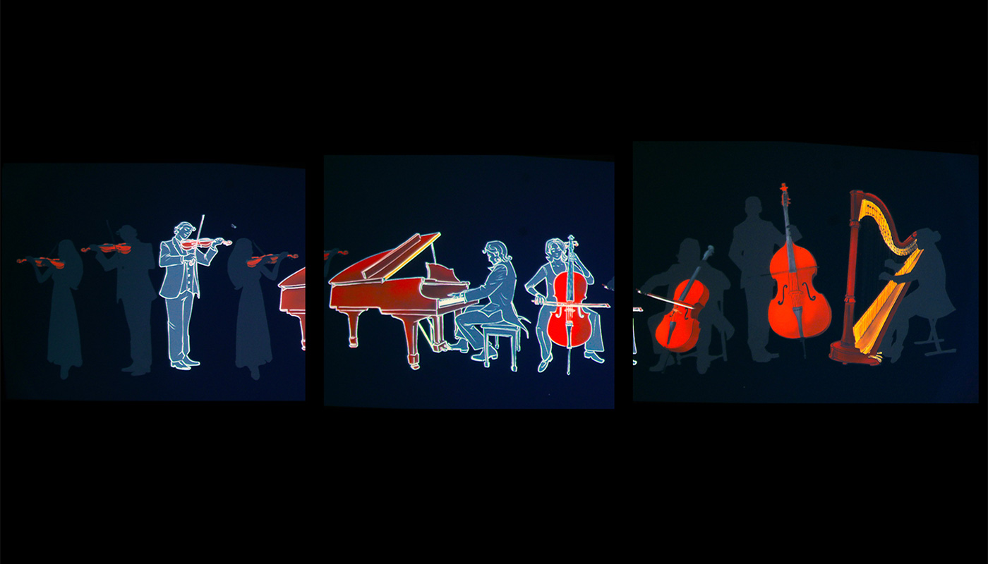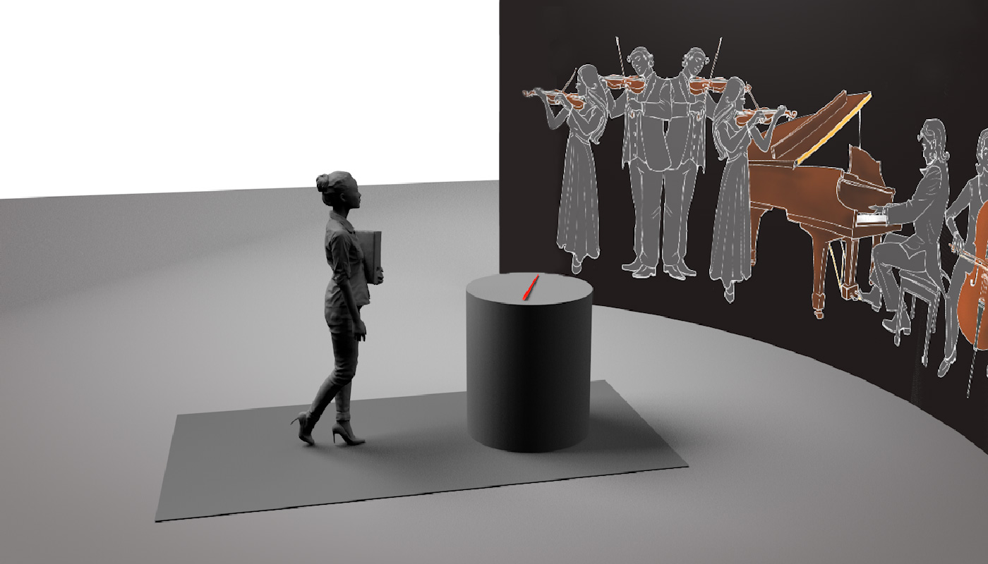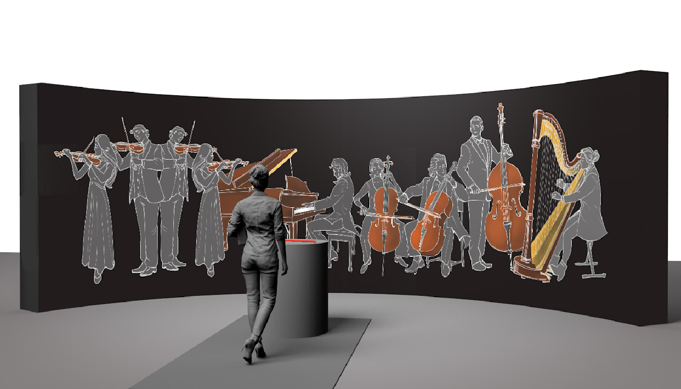 Eine interaktive Projektion an einer konkaven Wand, die den Besucher zu Teilen umgibt; und ein Taktstock mit einem Bewegungsleser. Die animierten Illustrationen stellen die Musiker des Kammerorchesters und ihre Instrumente dar. Im Hintergrund wird ein Konzertstück wiedergegeben. Durch Antippen werden einzelne Orchestermitglieder ein- oder ausgeblendet, was zu Änderungen im Klangbild führt. Mit dem Taktstock kann man aktiv das Tempo des gespielten Stücks bestimmen.