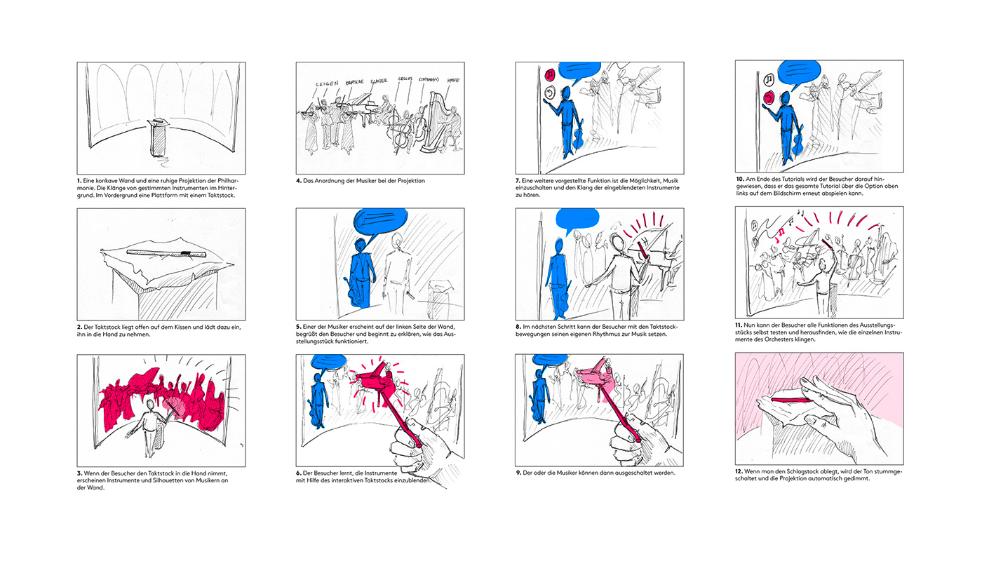 In der Ausstellung kann man erfahren, wie klassische Musikstücke komponiert wurden und sich in die Rolle eines Dirigenten einfühlen. Das Konzept für das Ausstellungsstück und die dafür benötigten Illustrationen wurden im Rahmen dieses Projekts entwickelt. Außerdem wurden erste Visualisierungen erstellt.