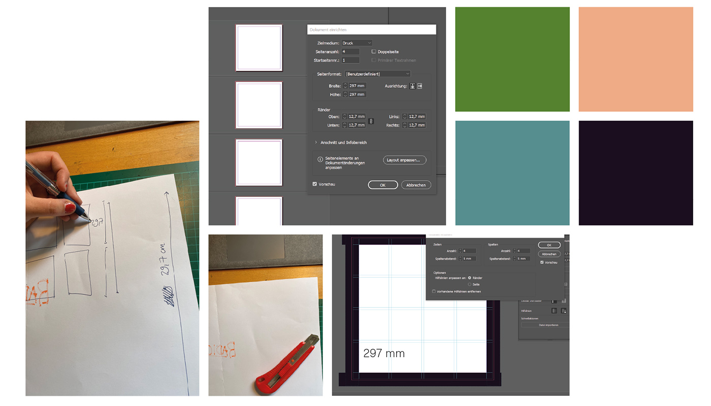 Ausarbeitung der Maße für die Plakate und Übernahme der Farbpalette ins Digitale