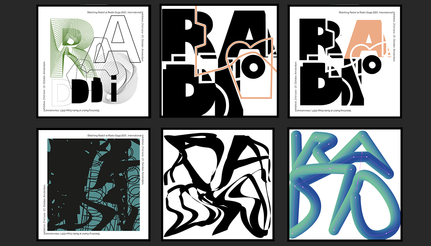 Für die Plakate habe ich neben der Farbpalette noch verschiedene, bearbeitete Versionen des Schriftzugs „Radio“ in die Gestaltung mit einbezogen. Der Schriftzug sollte jedoch zuletzt nicht mehr unbedingt lesbar sein, um einen abstrakten Eindruck zu erzielen.