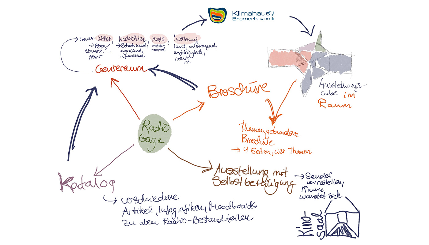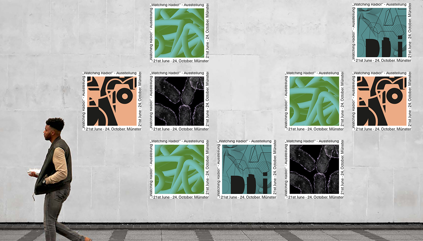 Mein Ziel war es, die Ausstellung so zu gestalten, dass das Radio in den verschiedenen Bereichen spür-, erleb- und beobachtbar (deswegen „Watching Radio“) wird. Die Zuschauer sollen jeweils einzeln die Ausstellungsräume begehen. Zuerst gibt es einen Musikraum, der verschiedene Genres mit verschiedenen Farben und Lichtern unterlegt, anschließend werden in einem Wetterraum verschiedene Wetterbedingungen abgewickelt, der Werberaum im Anschluss soll vollkommen überfordernd und schrill sein, während zuletzt der Nachrichtenraum zum Nachdenken anregt. Die Plakate sollen entsprechend aufgebaut sein, im quadratischen Format wirken sie alleine, aber auch in vielfach möglicher Kombination mit den anderen Plakaten. Farblich und optisch sollten sie auf die jeweiligen Räume abgestimmt und zuzuordnen sein.