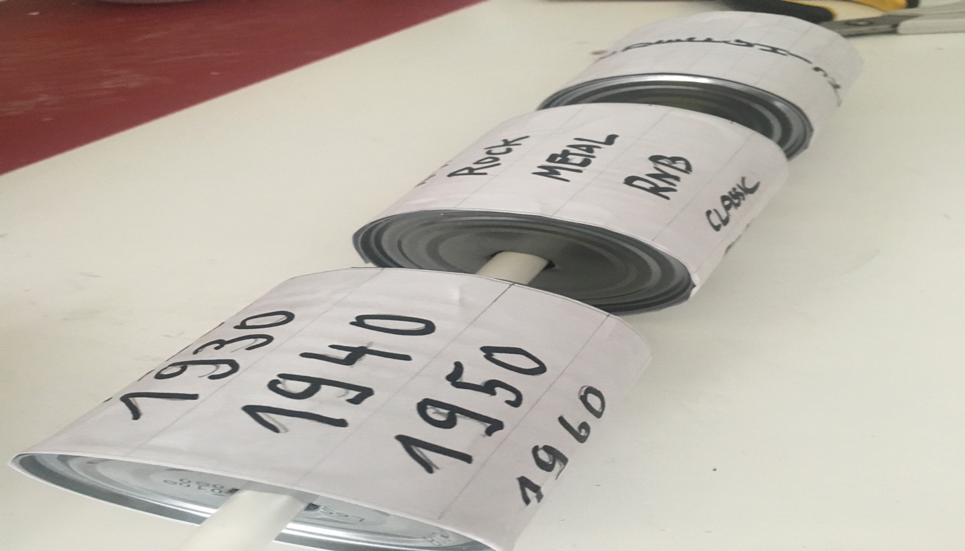 Eine interaktive-mediale Station soll konstruiert werden, indem sich der Rezipient mittels eines Steuerelements an einem großen Screen druch die Zeit bewegt um Ereignisse und ikonische Momente von Künstlern und Bands einzufangen.