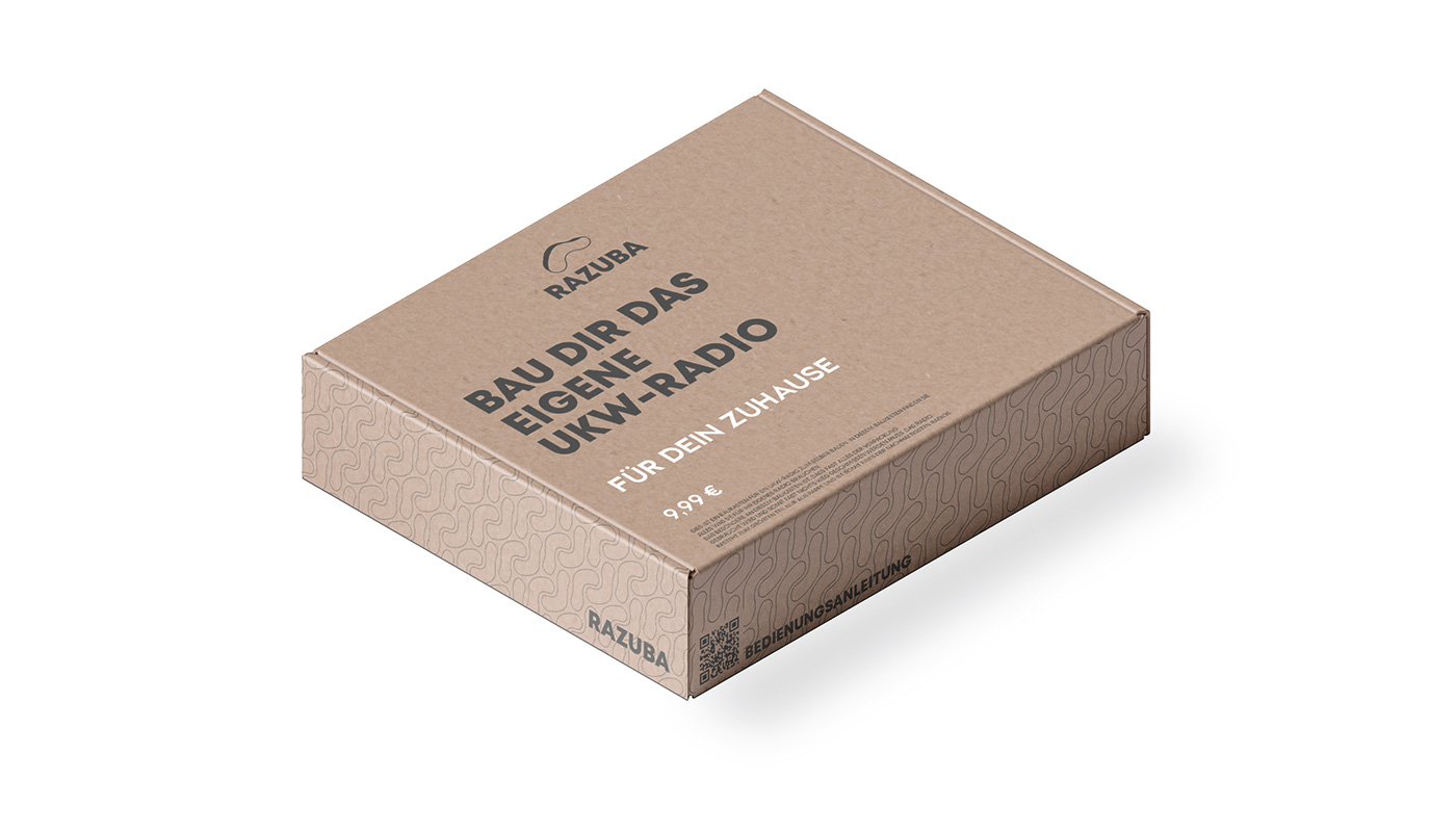 Inszenierung der Verpackung mit dem fertigen Radio.